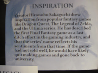 To mark the 25th anniversary of the Japanese release of the first Final Fantasy game, we have a display commemorating some of the popular cast and themes that have presented themselves throughout the series. A few pictures: